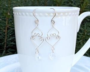 Ruby Red Wire Heart Design Earring Drops, 2.5 Inches Long
