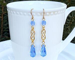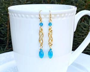 Opal Blue Briolette Wire Earrings, 2.75 Inches Long